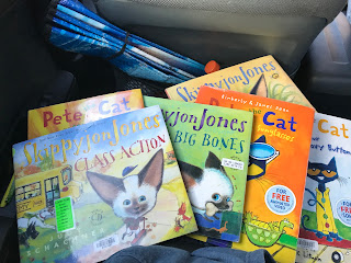 After that, we swung by the library to drop off 20 books that were borrowed by the preschool my oldest works at. While I was in the backseat with those books, I decided to read some of them.